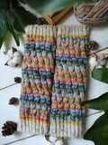 ヴァン・ゴッホシリーズ「ゴッホの寝室」を、配色の美しいスパイラル編みレッグウォーマーに編みあげました。