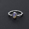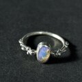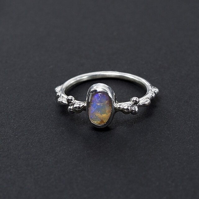 南オーストラリア 産のオパール原石を磨いて粒飾りをつけた華奢なデザインのリングに仕上げました。