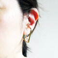 装着は、耳の下部に引っ掛けるようにして装着します。イヤーカフのつけ方は、写真をご参考になさってください。耳の上部から滑るようにつけるとつけやすいです。