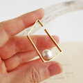 真鍮製の台形イヤーカフ「トラペゾイド」コットンパール付き