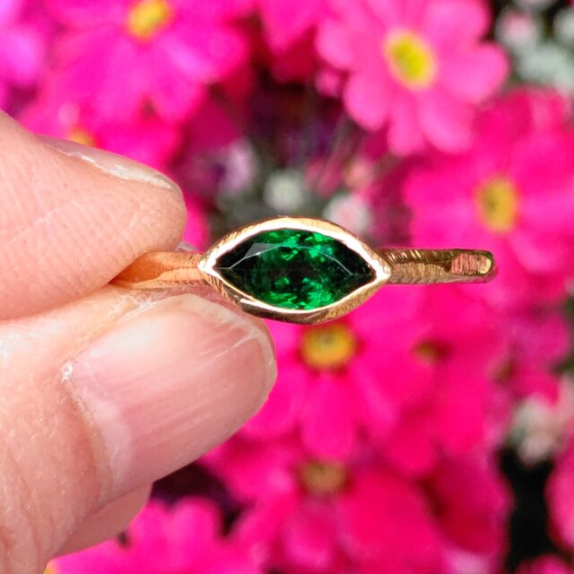 ツァボライト 鮮やかなグリーンガーネット マーキスカット 0.49ct SV925製リング