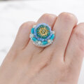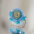 おしゃべりな指輪 48 フリーサイズ ビーズ刺繍のリング フラワー ブルー カラフル