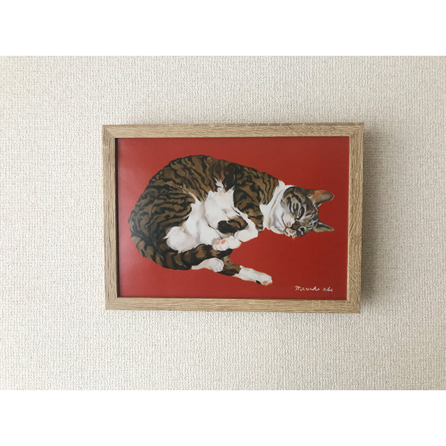 生まれて初めて絵を買いました。見ていて素敵だなと思う絵と、買っていつも眺めていたいと思う絵は、違うと思います。 動物の飼えないアパートの一室に、素敵な猫たちがやってきました。 写実的すぎず、可愛い瞬間がより際立つような、思わずニコッと笑顔になれる絵です。自分の飼い猫を自慢するかのように、素敵な絵を色んな人に自慢しました。大切に、可愛がります。 ありがとうございました。