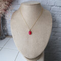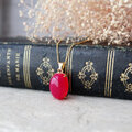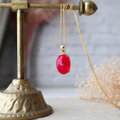 大粒!フューシャピンクレッドカルセドニーの一粒ネックレス(オーバル) 金アレ対応
