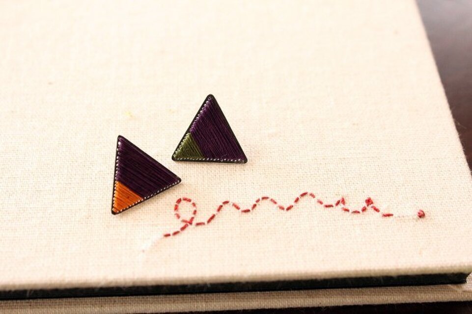 糸はパープルとオレンジ・パープルとグリーンの組み合わせ。