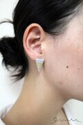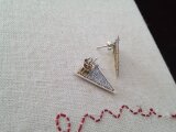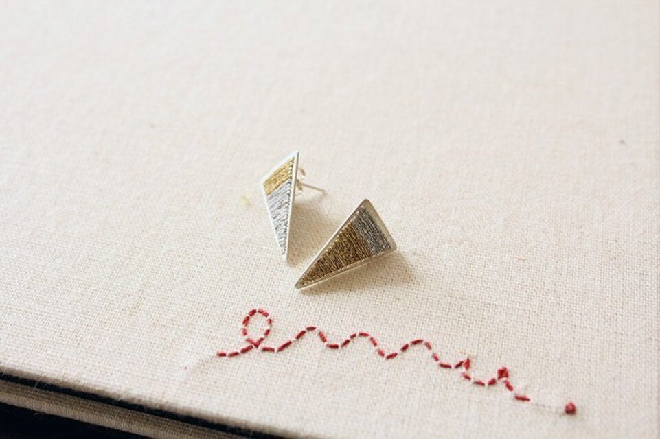 銀板からかたちを作り、ひとつひとつ穴をあけて糸を通してます。