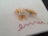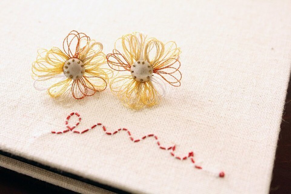 糸はイエロー・オレンジ・グレー・ベージュの組み合わせ。