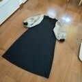 黒カットソーにダーク生成りリネンのパフスリーブワンピース