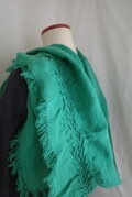 浮彫風のスモッキング刺繡を施し、フリンジ付きの大判ストールを作りました。
