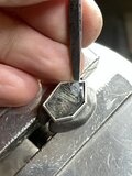 変形横長5角形の形に合わせて、伏せ込みで石留め