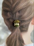 茶色に黄色が映え大人可愛いヘアゴムに仕上がってます。