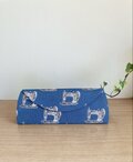 【受注制作】メガネケース・ミシン(ブルー)×茶リネン