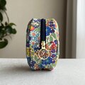 裏布はリバティプリントのジャガード生地を使用しています。光沢のある生地ですので、ポーチを開ける度に華やかさを感じて頂けたらと思います。