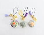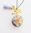 リバティスモールスザンナ柄柔らかい綿ジャージ生地のマカロンポーチストラップです。