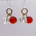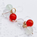 オレンジのカーネリアン、淡いグリーンのフローライト、浄化作用の強いクリスタル(水晶)を使ったピアスです。