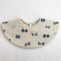 ラウンドフォルムが可愛らしい、リバーシブルのスタイ(よだれかけ)です。