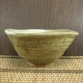 歪めたラーメンどんぶりです.薄手で軽めにして「どこかで見たような形」に歪めた本体に,自家製で雑味のある釉薬をかけました.電気・ガスを併用した「還元焼成」による “ビードロ” の色合いを,一部白で汚してみました.いかにも還元焼成しましたという陶器の色合いをお楽しみください.