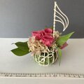 プリザーブドのバラの花を 白いワイヤーの音符のカゴにアレンジしました。