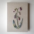 羊毛から手紡ぎした糸をコットンリネン地に刺繍し、ファブリックパネルにいたしました。