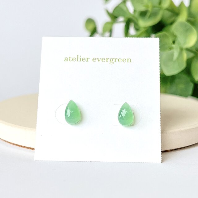 #クリソプレーズ #10月6日誕生石 #スタッドピアス #グリーン #アップルグリーン #金属アレルギー #サージカルステンレス #ドロップ #雫 #ペアシェイプ #シンプル #小ぶり #軽い #誕生日プレゼント #誕生日石ピアス