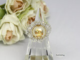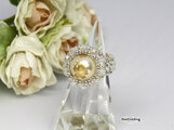 パールに桜の転写ビーズ玉の周りにクリスタルAB〔オーロラ〕ガラスビーズで包み込みました。japanese beauty!なリングです。