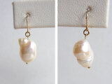 ユニークなナチュラルフォルムの大粒淡水パールを使ったピアス。
