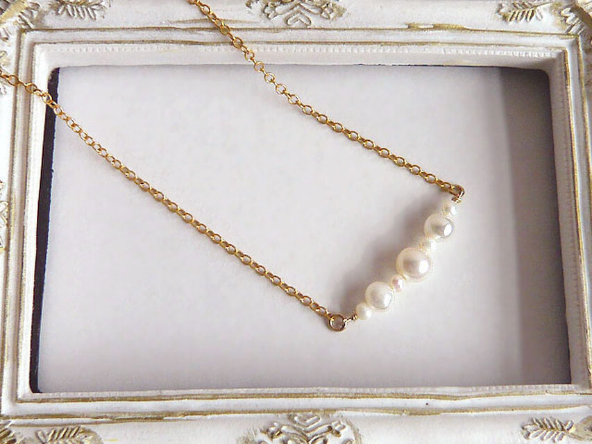小粒な淡水パールを14kgfチェーンに組み合わせた繊細なネックレスです。