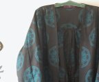 エメラルドグリーンの柄が印象的な大島紬からのリメイクです。