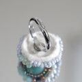 そのビーズを引き立てるように隙間なく刺繍をすると、カラフルでにぎやかで、まるでおしゃべりをしているような指輪に仕上がります。