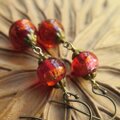 箔が入った赤いボヘミアンビーズを、二個並べました。