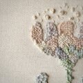 羊毛から手紡ぎした糸をキャンバス地に刺繍し、ファブリックパネルにいたしました。