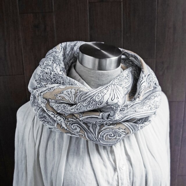 上質イタリアン リネンのスヌード グレー/ベージュ