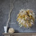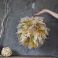 たくさんのパンパスグラスの中にミモザを入れたフライングボールです。