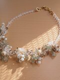 チェコの桜ビーズやパール、輝きの美しいガラスビーズ等を繋ぎ、ゴールドのクラスプで仕上げた、とてもゴージャスで華やかなデザインネックレスです。