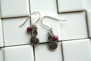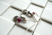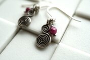 チャームの横に小さなルビーを1粒添えてあります。ややくすんだピンク色は派手さがなく、エスニックテイストの渦巻きチャームにもよく合います。