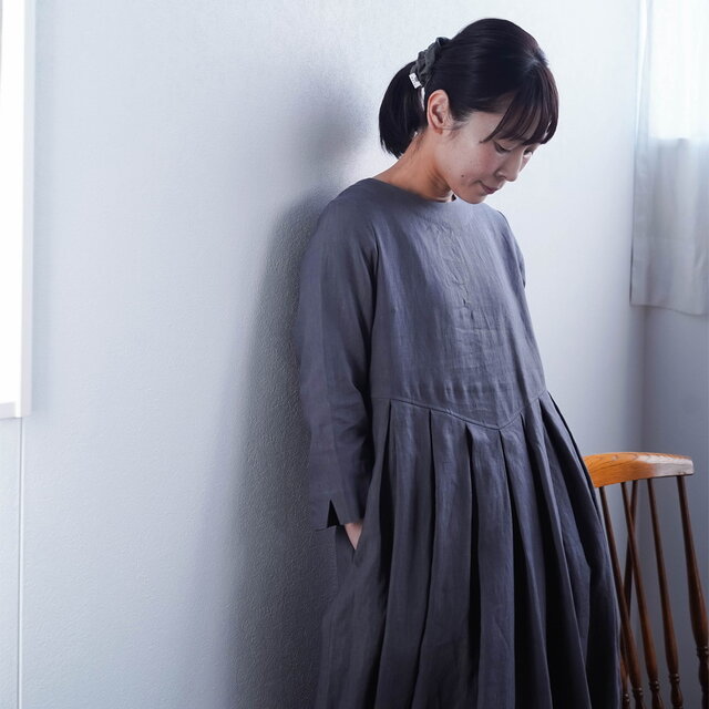 【wafu】リネンワンピース 上半身貧相党 いさわサイズ 鍵盤タックドレス / 鈍色 a013z-nib1