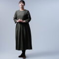 麻 Linen リネン リネンワンピース リネンドレス ワンピース Dress ドレス ロング丈 マキシ丈 フレアワンピース 丸首 クルーネック ママコーデ 7分袖 半端袖 スリット袖 フレア タックワンピース フォーマル フォーマルシーン 入園式 入学式 卒業式 卒園式 結婚式 オールシーズン 春 夏 秋 冬 グリーン 緑色 カーキ