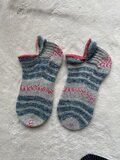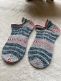 ちなみに竹串か?!ってくらい細い針で編んでるので意外と薄いです。普通の靴下と同じように履けますよ♪