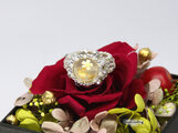 特に屈折率の高いスワロフスキーなどに関しましては、光のあたり加減で、色や表情を変える素材もございます。