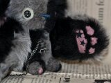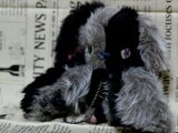 黒とグレーのフェイクファーで”まっぷたつ”なぬいぐるみです。