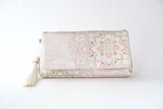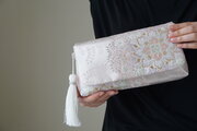 桜色・シルバーを基調とした華紋様のシルク帯を使った2wayクラッチ&ハンドバックです。
