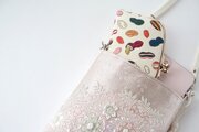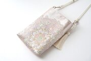 華紋様 桜色・シルバーのシルク帯を使ったスマホショルダーバッグです。