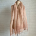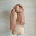 ご家庭で洗う場合は、単独で、「中性洗剤」(※お洒落着用洗剤)をよく混ぜた水かぬるま湯(30度くらい)の中で、軽く押し洗いします。2回、そっとすすぎ、タオルで水気を取り、手でしわを伸ばし、陰干してください。