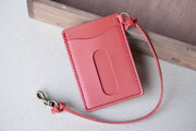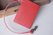 レザーパスケース 国産牛革 定期入れ レッド ストラップ付き apo-08hn