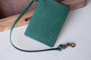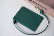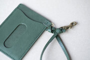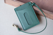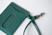 レザーパスケース 国産牛革 定期入れ グリーン ストラップ付き apo-08hn