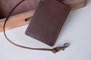 レザーパスケース 国産牛革 定期入れ チョコ ストラップ付き apo-08hn