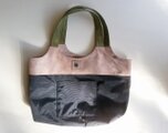 持ち手と底がオリーブ色、それ以外はオークベージュ色で作ったバッグになります。