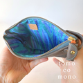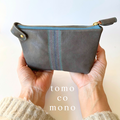 刺繍ポーチ『BLUEステッチ』エメラルド(ヤギ革)