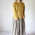 前丈はすっきりと着られる丈なので、ボトムやスカートに合わせやすいデザインです。