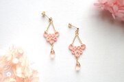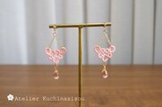 【受注製作】タティングレースとチェコビーズのトライアングルピアス〈桜〉